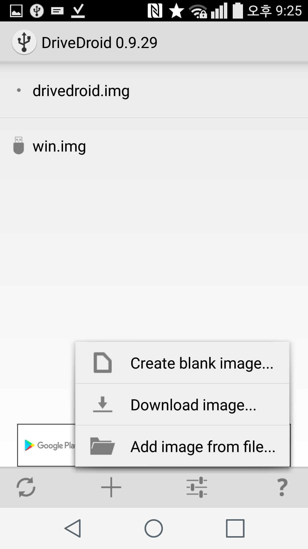 빈 이미지가 다 생성되면 위에 사진처럼 drivedroid.img와 본인이 생성한 이름의 img파일이 생성된다.