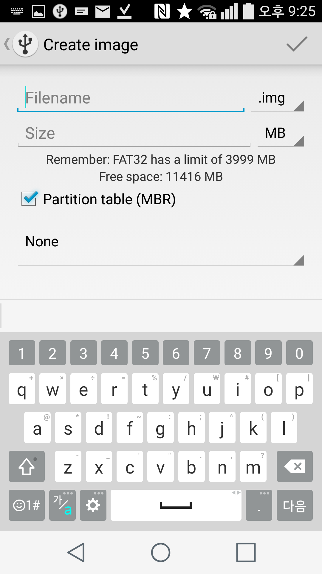 usb크기( 본인 스마트폰의 남는 용량을 고려해 설정)